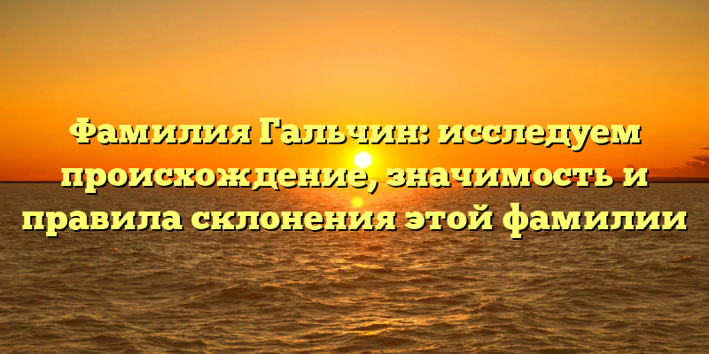 В данной статье мы рассмотрим происхождение фамилии Гальчин, ее значение и правила склонения на русском языке. Также мы узнаем некоторые интересные факты, связанные с этой фамилией.