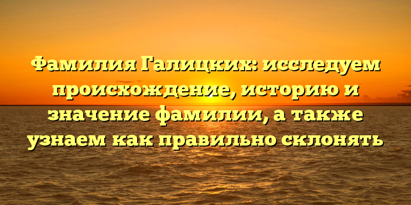 - Раскрываем тайны фамилии Галицких: история происхождения и правильное склонение