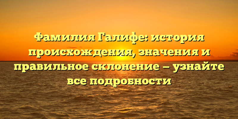 - Изучаем Фамилию Галифе: происхождение, значение и правильное склонение — полный гид для любопытных.