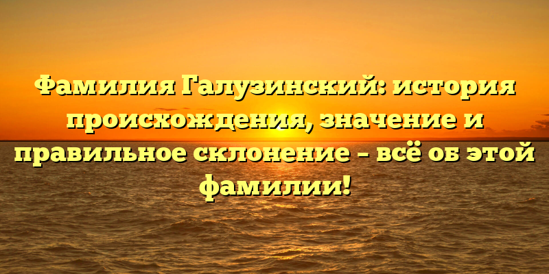 Узнайте еще больше о фамилии Галузинский — историю происхождения, значение и правильное склонение в нашей статье!