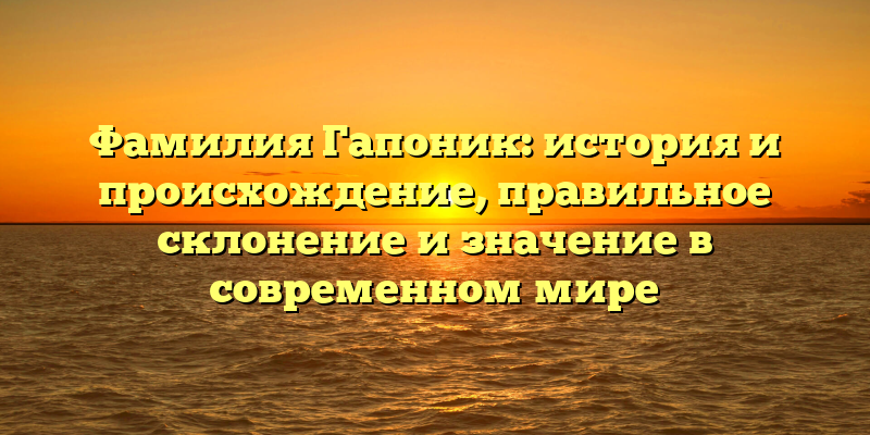 - Фамилия Гапоник: исследуем происхождение, значимость и правила склонения в современном мире