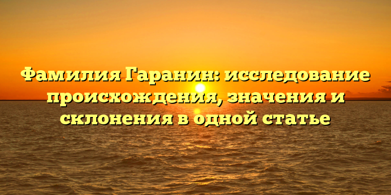 - Узнайте все о фамилии Гаранин: происхождение, значения и склонения в одной статье с подробным исследованием