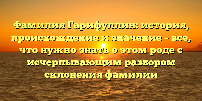 - Фамилия Гарифуллин: происхождение, история и значение с полным разбором склонения именитости.