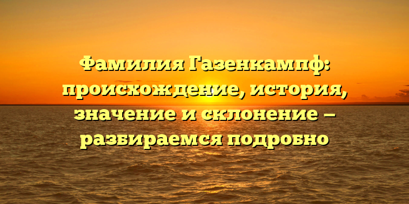 - Фамилия Газенкампф: происхождение, история, значение и склонение – всё, что вы хотели знать о этом редком немецком имени!