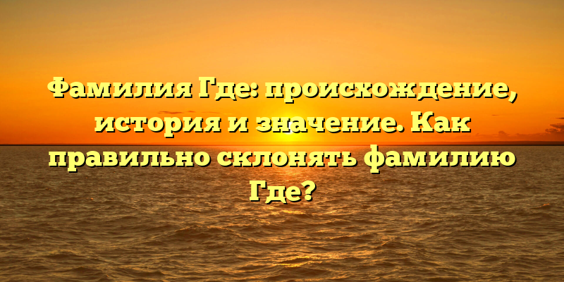 Где – одна из самых распространенных фамилий в России. Несмотря на ее популярность, многие не знают ее историю и происхождение. В данной статье мы попробуем рассказать все о этой фамилии: откуда она появилась, как ее правильно склонять и какое значение имеет.