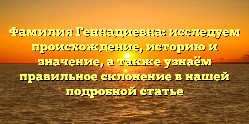 - Фамилия Геннадиевна: происхождение, история и значение, а также правильное склонение – все подробности в одной статье!