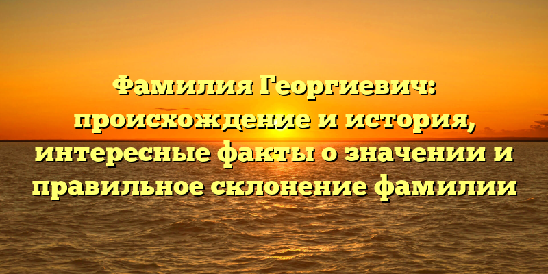 В данной статье мы рассмотрим более подробно историю происхождения фамилии Георгиевич, разберемся с правильным склонением и обсудим интересные факты о значении данной фамилии, а также ее влиянии на истории и культуру России.