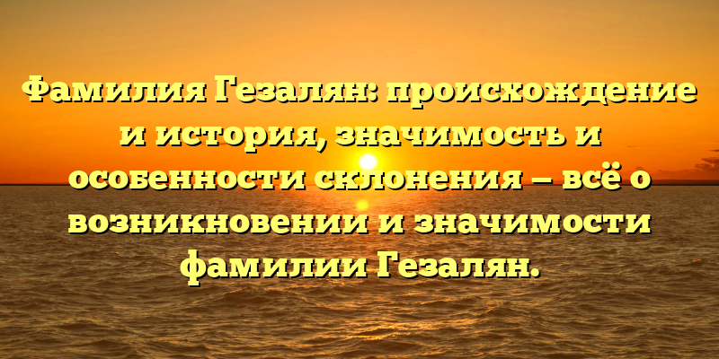 Фамилия Гезалян: от истоков до современности. Узнайте все об истории, значимости и правильном склонении фамилии Гезалян.
