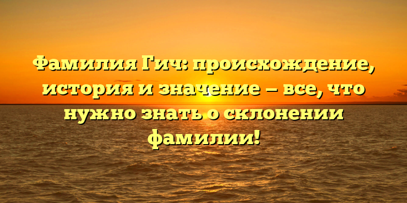 - Фамилия Гич: происхождение, история и особенности склонения — полное руководство для любого носителя!