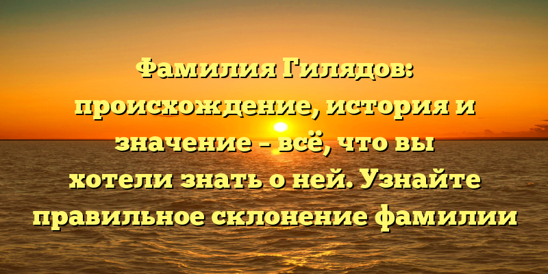 Если вы хотите узнать больше о происхождении и значении фамилии Гилядов, а также о правильном склонении, то читайте нашу статью до конца!