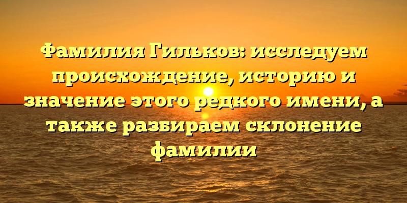 Каждая фамилия имеет свою историю и значение, и фамилия Гильков — не исключение. Она относится к редким именам, которые вызывают интерес и вопросы у тех, кто встречает ее впервые. Что означает этот корниловый звук в конце? Каково происхождение этого имени и как правильно его склонять?