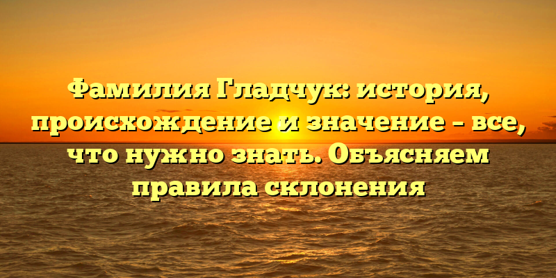 - Фамилия Гладчук: история, происхождение и значение, а также правила склонения в одной статье