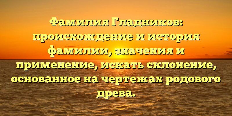 - Раскрываем тайны фамилии Гладников: происхождение, значения, искать склонение и история, основанная на родовом древе