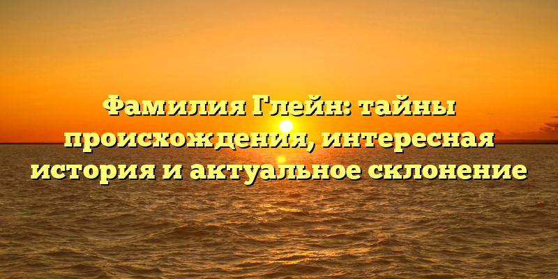 В этой статье мы рассмотрим историю происхождения фамилии Глейн, изучим ее тайны и узнаем, как правильно склонять имя в настоящее время. Готовы узнать больше? Продолжайте чтение!