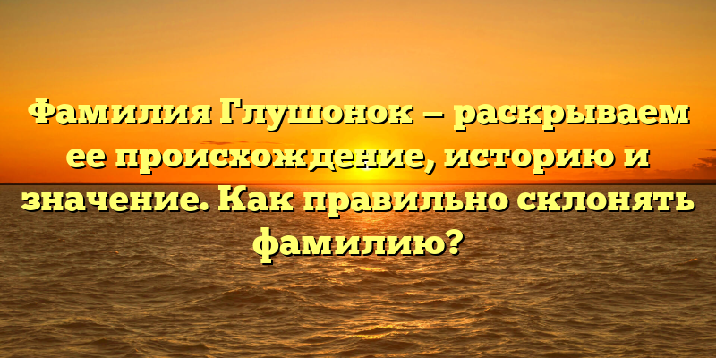 Раскрываем тайны происхождения фамилии Глушонок и делимся правилами склонения: узнайте ее историю и значение уже сейчас!