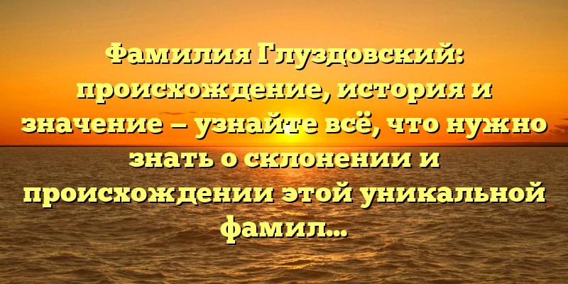 - История и происхождение фамилии Глуздовский: изучаем уникальное наследие и склонение