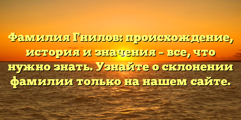 - Узнайте все о происхождении и истории фамилии Гнилов и её значении на нашем сайте: раскрытие тайн склонения фамилии.