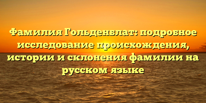 Данная статья предлагает рассмотреть подробно историю, происхождение и склонение фамилии Гольденблат на русском языке. Мы рассмотрим историю происхождения фамилии, ее распространенность, а также склонение в различных падежах. Прочитав эту статью, вы сможете узнать много интересного о фамилии Гольденблат.