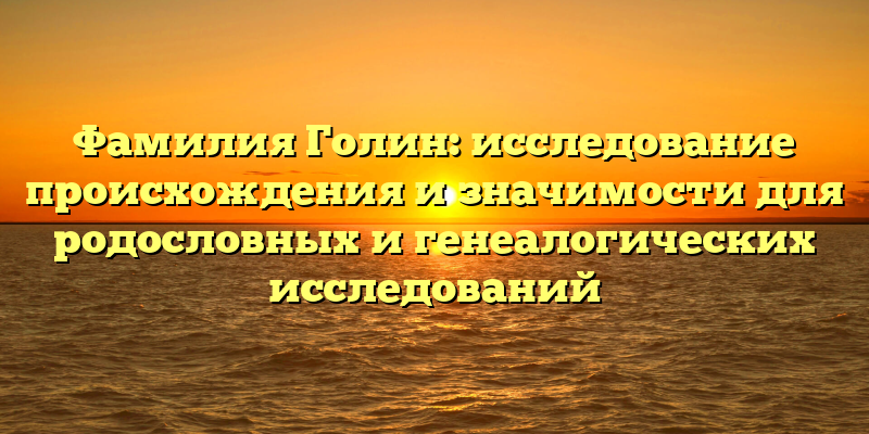 - Открытие тайн происхождения фамилии Голин: полезная информация для генеалогических исследований