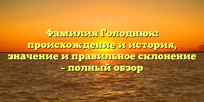 - Фамилия Голоднюк: история происхождения, значение и правильное склонение — полное руководство для генеалогов и языковедов