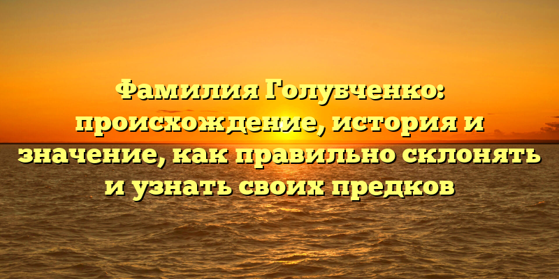 В данной статье мы рассмотрим историю и значение фамилии Голубченко, а также подробно разберем правила склонения этой фамилии и способы узнать своих предков и составить свое генеалогическое древо.