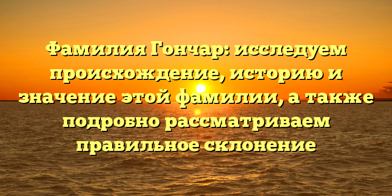 - Исследуем происхождение, историю и значение фамилии Гончар, а также узнаем правильное склонение: все, что нужно знать о данной фамилии