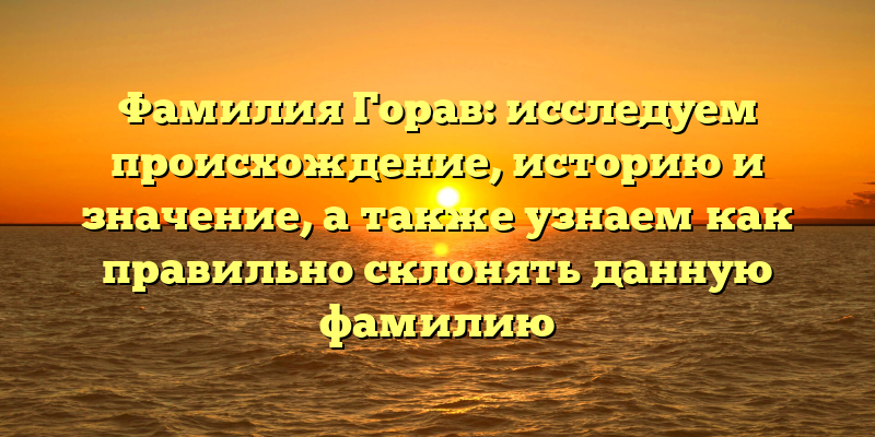 - Фамилия Горав: происхождение, история, значение и особенности склонения