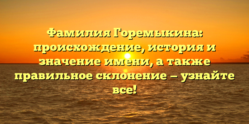 - Фамилия Горемыкина: история, происхождение и значение имени, а также все о правильном склонении — полный гид от эксперта