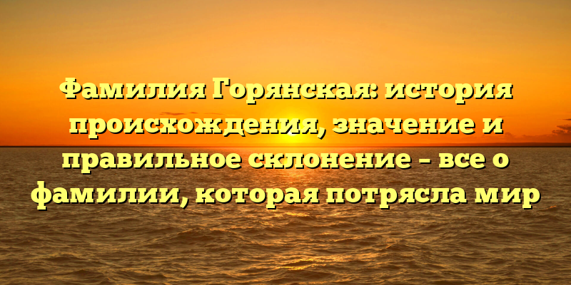 - Раскрываем тайны фамилии Горянская: история, значение и склонение, за которыми скрывается нечто большее!