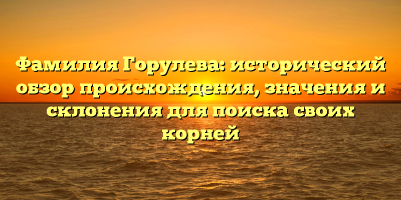- Фамилия Горулева: исторический обзор происхождения, значения и склонения для генеалогических исследований