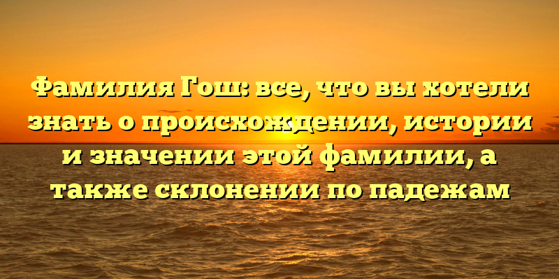В данной статье мы рассмотрим историю появления фамилии Гош, ее распространение в различных странах мира, а также разберем склонение по падежам. Для многих людей это также может быть интересным узнать значение своей фамилии и связь с их предками.