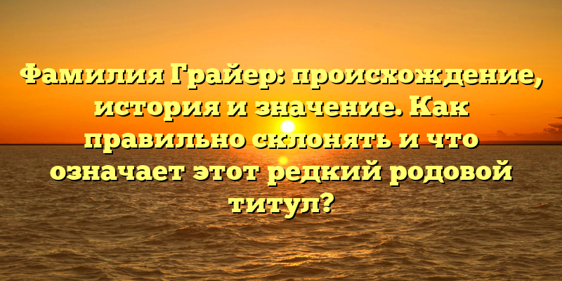 - Фамилия Грайер: история происхождения, значение и правильное склонение редкого родового титула.