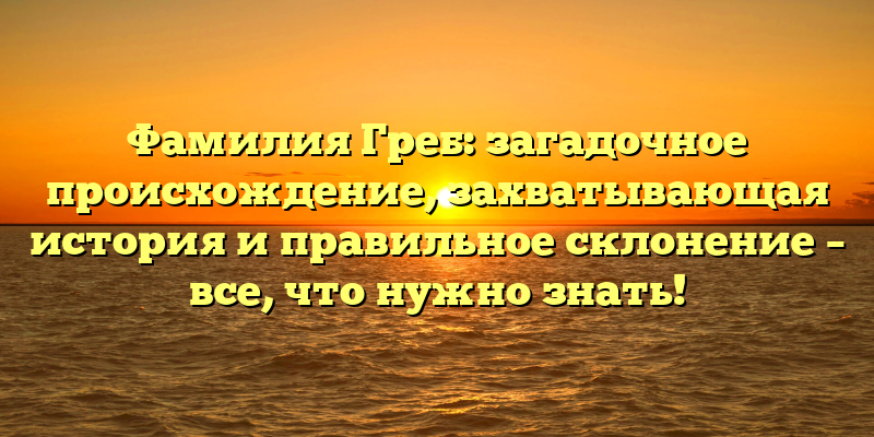 Фамилия Греб – одна из наиболее загадочных и неизвестных фамилий в мире. Среди людей, носящих это имя, очень мало тех, кто знает его происхождение и историю. В этой статье мы попытаемся рассказать все, что нужно знать о фамилии Греб – от истории ее возникновения до правильного склонения.