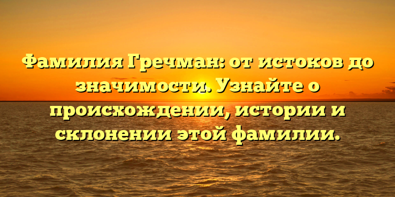 - От истоков до значимости: история и склонение фамилии Гречман