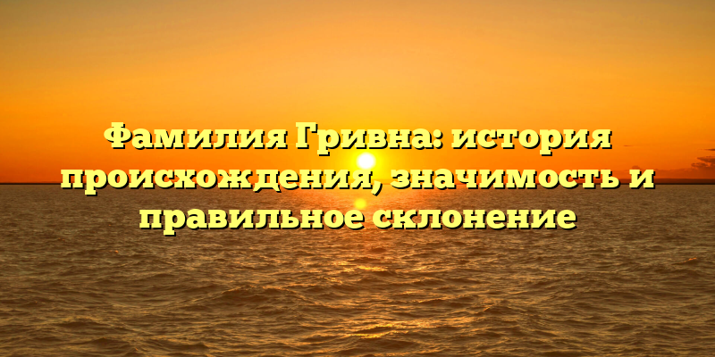 - Исследуем историю происхождения и значимость фамилии Гривна и узнаем, как правильно ее склонять
