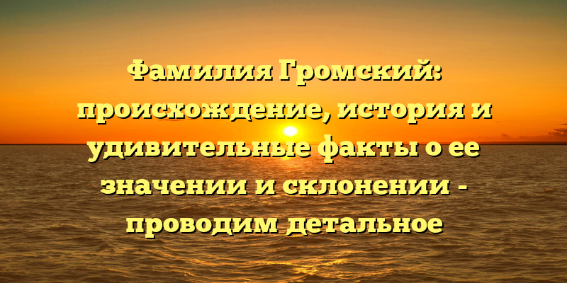 - Раскрываем тайны фамилии Громский: история, происхождение и удивительные факты — эксклюзивное исследование на нашем сайте!
