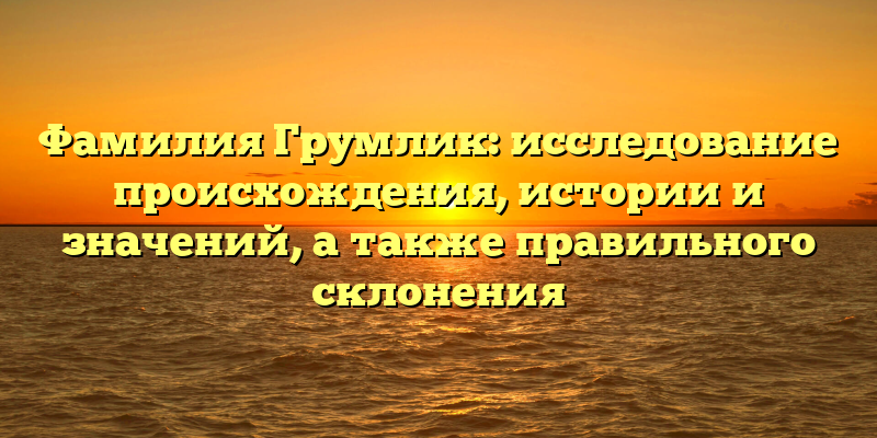 Фамилия Грумлик: полное исследование происхождения, истории и значений с правильным склонением