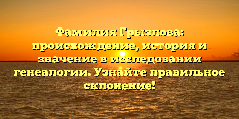 - Фамилия Грызлова: происхождение и значение в генеалогических исследованиях. Научитесь правильно склонять!