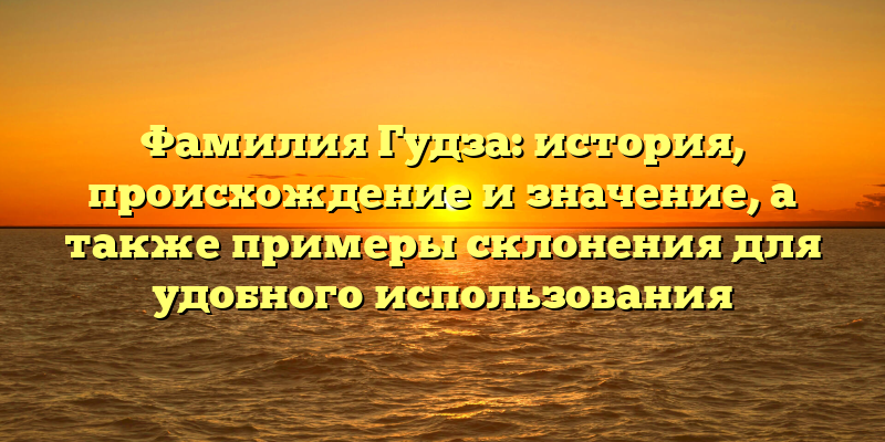 В статье мы представим примеры склонения фамилии Гудза в именительном, родительном, дательном, винительном, творительном и предложном падежах для удобства использования при заполнении анкет, документов и прочих необходимых бумаг, а также узнаем интересные факты о ее истории и происхождении.