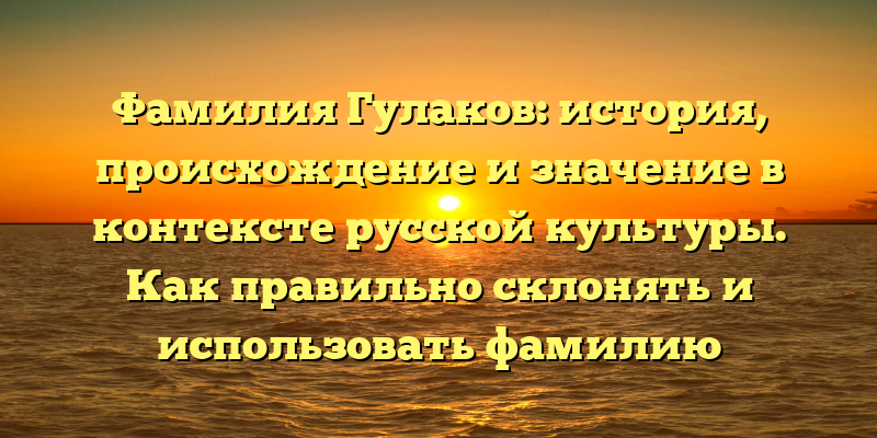 Значение фамилии Гулаков в контексте русской культуры