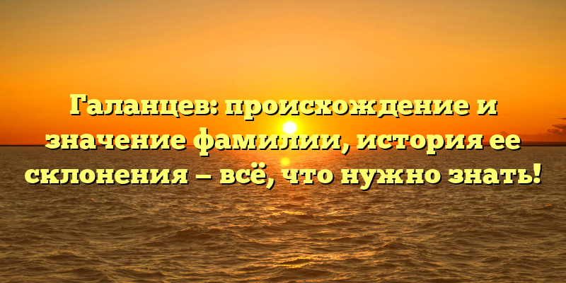 От глины до истории: погружаемся в происхождение и значения фамилии Галанцев с полным разбором склонения
