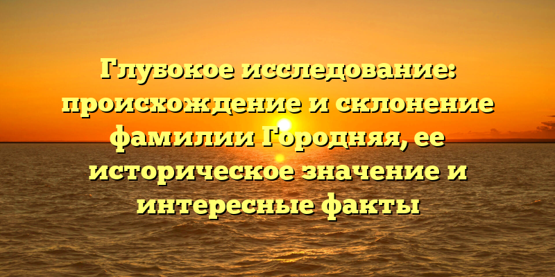 - Открытие тайн происхождения и исторического значения фамилии Городняя: глубокое исследование и удивительные факты