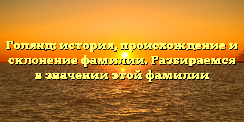 - Голянд: история и происхождение фамилии, а также ее склонение и значение — полный обзор