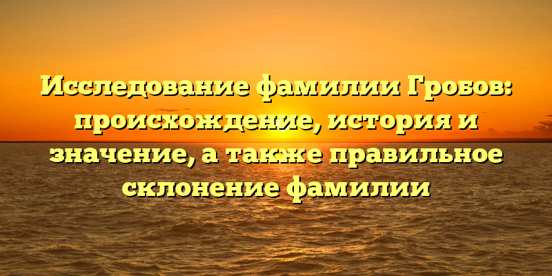Исследование фамилии Гробов поможет выяснить ее происхождение, историю и значение. Также будет рассмотрено правильное склонение данной фамилии.