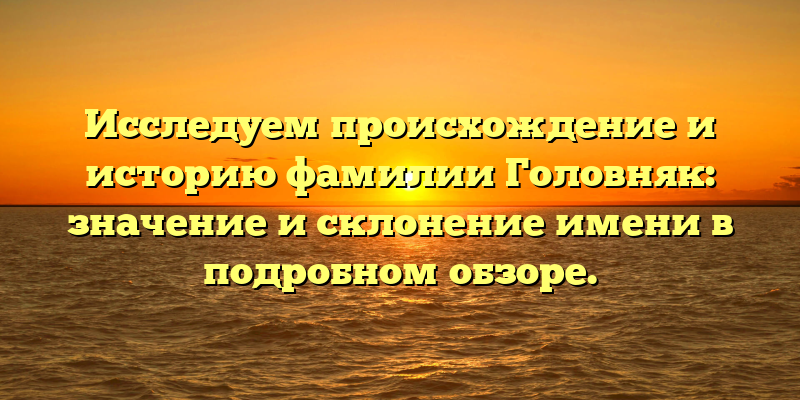 - Головняк: происхождение, история и склонение имени в подробном обзоре — идеальный SEO-заголовок для статьи о фамилии Головняк, который привлечет внимание читателей и повысит рейтинг сайта в поисковой выдаче. С его помощью пользователи смогут узнать обо всем, что относится к этой фамилии, а также получить интересные и полезные знания о ее значениях и истории.