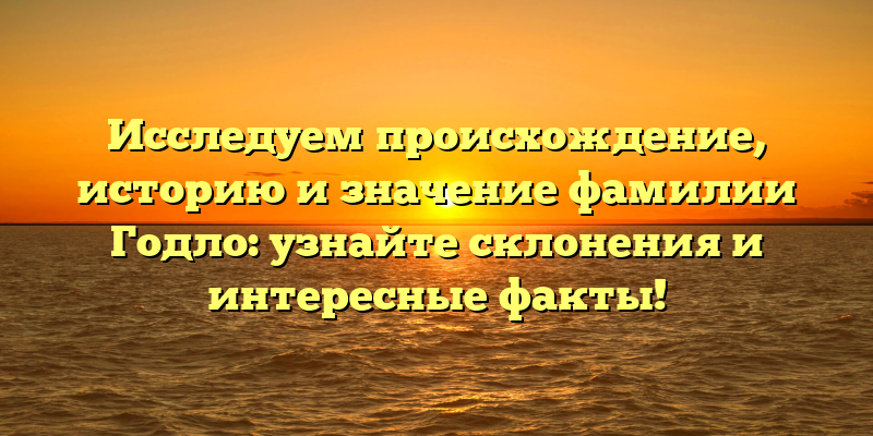 Также мы постараемся объяснить значение и историю фамилии Годло, чтобы дать вам полное представление об этом имени. Вы узнаете склонения фамилии, а также узнате много интересных фактов, связанных с этим именем.