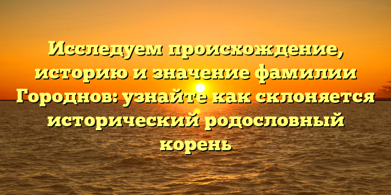 - Изучаем происхождение и значимость фамилии Городнов: разбираем исторический родословный корень и способы его склонения