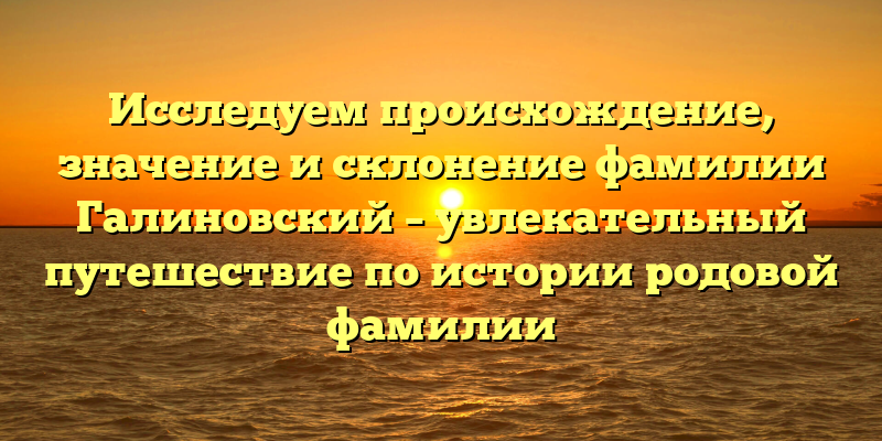 - Открываем тайны происхождения и истории фамилии Галиновский: узнайте все о значении и склонении имени своих предков!