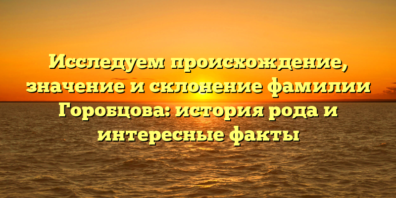 - «От Горобцовых до Горобцовых: исследование происхождения, значений и склонений фамилии с историей рода и любопытными фактами»