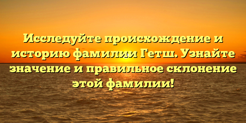 - Фамилия Гетш: происхождение, история и значение – развеиваем мифы и учимся правильному склонению